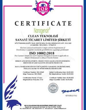 - CLEAN TEKNOLOJİ- 10002 2018 MÜŞTERİ MEMNUNİYET BELGESİ